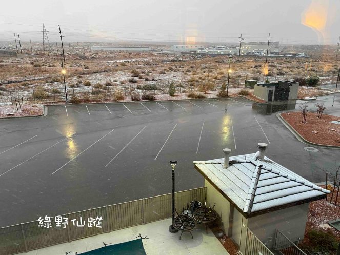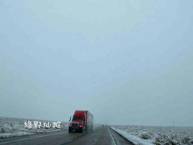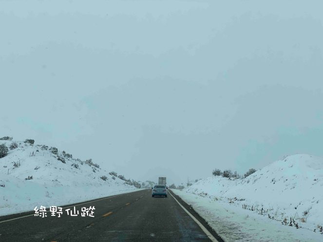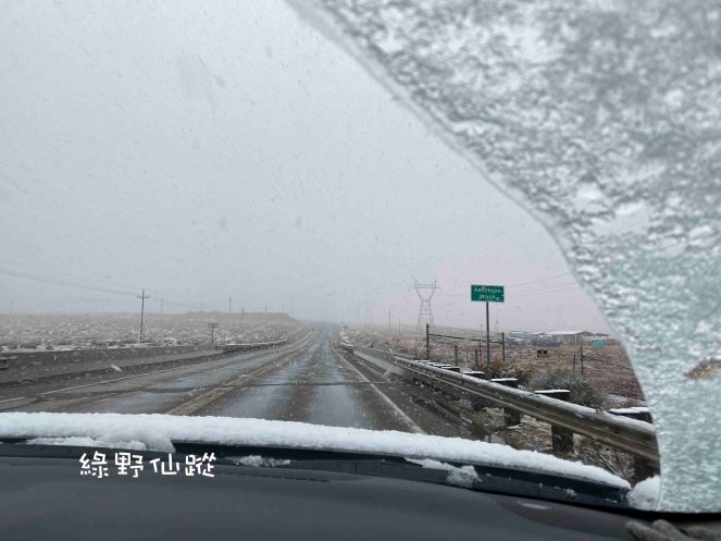 從格蘭峽谷朝著拉斯維加斯的方向行駛,能見到雪的機會唯獨這一段路程,因為拉斯維加斯不會下雪。
