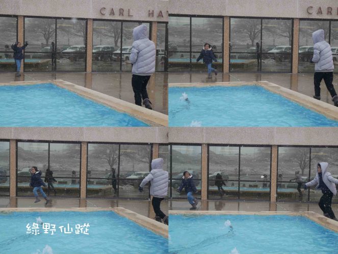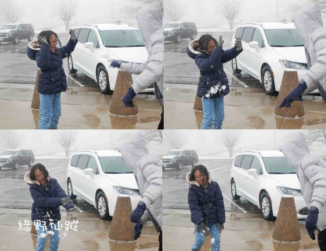 QE和妹妹卻在遊客中心前打起雪戰,久久不願離去。