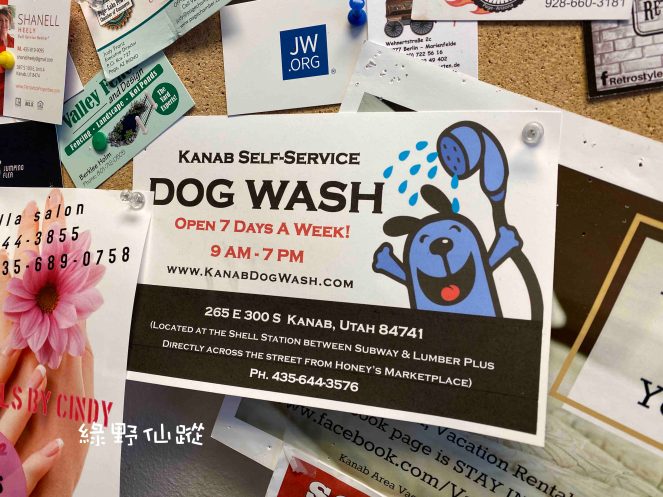 我以為佈告欄上張貼的是洗車服務,細看之下原來是自助洗狗服務。