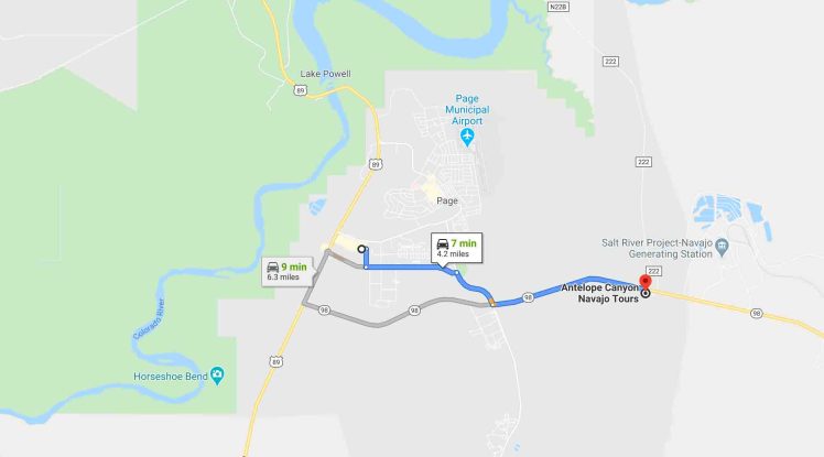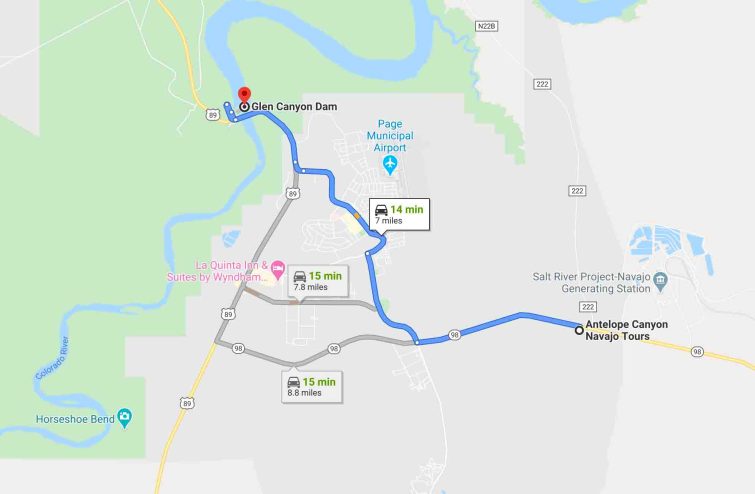 (Antelop Canyon Navajo Tours → Glen Canyon Dam Via AZ-98 / Coppermine Rd / S Lake Powell Blvd / N Lake Powell Blvd / U.S. Route 89 [7miles @ 14min])