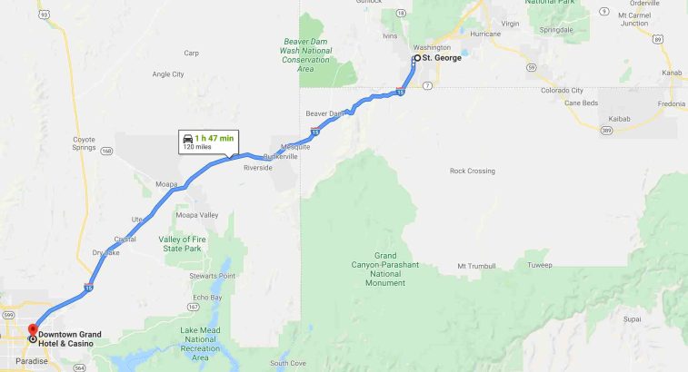 St George → Downtown Grand Hotel & Casino (LAS) Via I-15 [120miles @ 1hr 47min]