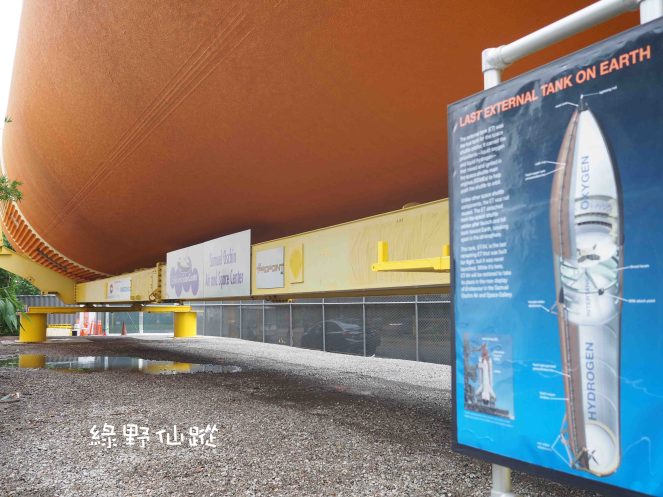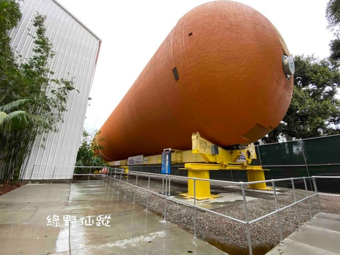 走出奮進號展廳,千萬不要錯過置於展廳外鄰近出口處的太空梭外儲箱展示。