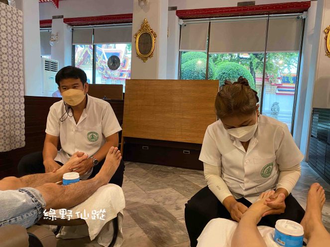 臥佛寺被視為泰國古法按摩的源頭,1955年成為首間獲泰國教育部批准成立的泰國醫藥及按摩學校,系統傳授泰式按摩。寺內設兩間按摩室,提供全身、足部、香薰足部三種按摩,時間分為30分鐘與1小時。師傅由學校訓練,理論及手法遵從醫學文獻記載,按摩後能達舒緩肌肉疲勞,加強血液循環、關節靈活性,以及減壓力的效果。雖然按摩室環境難跟一眾名店相提並論,只有簡單的數排按摩床與躺椅,但見識及體驗過正宗泰式按摩後,環境也頓變成小瑕疵。