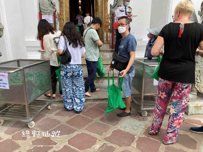 因入口與出口處有別,所以得各自背鞋行走(佛殿備有鞋子環保袋供訪客暫用)。